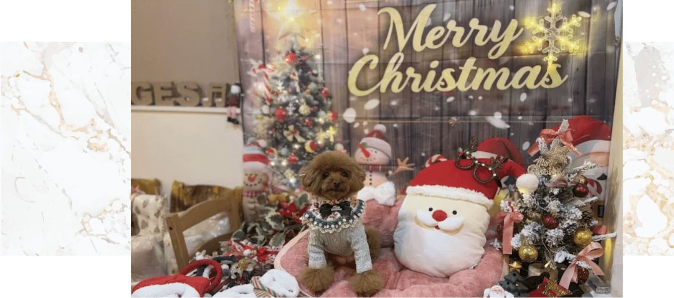 店内にはわんちゃんが自由に遊べるスペースや、季節ごとに変わるフォトブースをご用意。