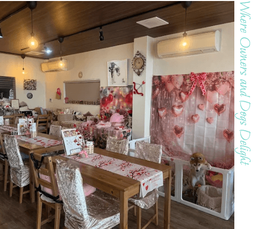 店内にはわんちゃんが自由に遊べるスペースや、季節ごとにテーマが変わるフォトブースを完備。